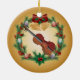 Este design bonito da grinalda do Natal tem um violino no centro em um ornamento cerâmico frente e verso da música para o violinista. Um grande stuffer da meia para o estudante do violino ou o professor de música em grupos da orquestra ou do conjunto.