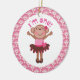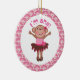 Comemore seu primeiro aniversario com um bonito mim são um primeiro ornamento da lembrança do aniversário que caracteriza um macaco pequeno adorável da bailarina no rosa.