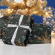 Se você está procurando por um molho de Natal especial que é único, você acabou de encontrar um. Estes lindos flocos de neve em ouro, azul e branco em um fundo escuro mostrarão bem em seus presentes de Natal. Você encontrará mais variações de cor com o mesmo design.