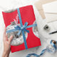 Presente Enfeites prateados em papel de enrolamento vermelh