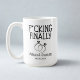 Celebre sua jornada para "finalmente" estar envolvido com esta hilária caneca de café! Apresentando um texto em negrito "F*cking Finalmente", uma ilustração do anel de noivado doce e personalizado com os nomes do casal e a data do noivado. Esta caneca certamente trará uma risada e é um presente divertido e memorável para o casal recém-noivo. O presente perfeito para celebrar seu tão esperado noivado! Bonito presente de noivado de café noivado