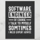 Design Engraçado de Programação que diz: "Engenheiro de Software Claro que Falo Comigo Mesmo Às Vezes Preciso de Conselhos de um Especialista". Isso é justo o que um Programador que desenvolve Software de Computador precisa para viver.