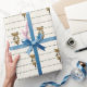 Este papel de embrulho adorável apresenta uma corda de luzes de Natal retroradas, com um gato muito infeliz emaranhado e suspenso deles, sobre um fundo de marfim de sono minimalista.