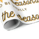Este papel de embrulho mostra as palavras "Esta é a estação para ser alegre" em uma fonte impressão única e nítida mais o contorno de ouro de letras negras com um presente de Natal dourado como embrulhar fita e arco neste tema e estilo de Natal. Todos os papéis de embalagem são oferecidos em quatro tipos de papel premium e cinco tamanhos diferentes. Tem uma superfície mais macia e acabamento sem graça com a impressão de cores borda a borda do cheio em papel de 60 lb, com peso de texto. Excelente para todos os tipos de embrulho de presentes para qualquer coisa, desde aniversários até a graduação, casamentos até aniversários.