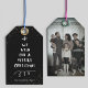 Uma etiqueta de presente de fotos de Natal chic com o texto branco "Desejamos a você um Feliz Natal" em um fundo preto básico com flocos de neve. É simples adicionar um toque pessoal alterando a família e a foto atrás. Uma design de Natal moderna, minimalista e simples para fazer uma declaração este ano! A imagem fornecida serve apenas como exemplo; sinta-se livre para substituir as suas próprias imagens.