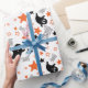O "Livro dos Fantasmas Sem Olhos e das Estrelas do Dia das Bruxas" apresenta fantasmas divertidos flutuando entre estrelas cintilantes e sotaques "boo" assustadores, perfeito para embrulhar presentes de Halloween com uma vibração divertida e estranha.