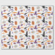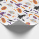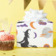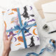 A "Bruxa sem costura e papel de molho com lua" apresenta feiticeiras voadoras sobre vassouras sob luas brilhantes e nuvens de deriva, com sotaques "boo" brincalhões, fazer perfeito para presentes assustadores no Halloween.