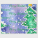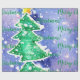 Feliz na moda de Natal, tipografia verde, com uma árvore de Natal nua, com uma estrela brilhante sobre as luzes de cima e o céu azul e roxo e a queda do fundo da neve, repetindo o padrão design para sua alegria festiva.