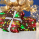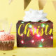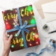 Feliz na moda de Natal, tipografia amarela com luzes verdes e vermelhas de Natal, design de padrão repetitivo para sua alegria festiva.