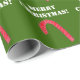 Bonito fundo verde com canas vermelhas festivas com aparência de listras aspergidas e aparência de contorno 3D. Feliz Natal está escrito em uma cor branca. Mantenha o ditado ou PERSONALIZE a caixa de texto e insira sua própria mensagem. Clique em PERSONALIZAR TI para alterar a cor verde de fundo, se desejar. Arte original © TamiraZDesign.