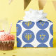 O clássico design azul e dourado torna-o adequado para todas as suas necessidades de doação de Chanucá. Esteja você comemorando com a decoração tradicional ou moderna, nosso papel de embrulho complementará suas festividades sem problemas.