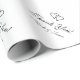 Festa de casamento de chic favorece o obrigado que você embrulha papel. Papel de embrulho personalizado para presentes de token para convidados ou recém-casados. Adicione sua própria mensagem personalizada. Logotipo de corações empolgantes. Design romeno preto e branco com nome de noiva e noiva/casal de recém-casados. encapsulamento de presente de modelo para tipografia com na moda para amizade e família.