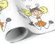 O papel de envolvimento com uma vara bonito figura o cheerleader em um uniforme alaranjado com poms amarelos do pom.