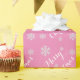 Este bonito papel de embrulho é rosa com as palavras Feliz Natal em branco, e muitos flocos de neve. Você pode mudar as palavras e adicionar as suas.