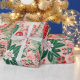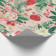 Os florais cor-de-rosa decoram este lindo padrão de Natal num design como os populares no último meio século. Misturados com os elementos florais um tanto caprichosos são bausolas e ornamentos divertidos. Tudo isso em meio a folhas verdes e outras folhagens. E em um fundo cor-de-rosa. Muito elegante e adorável para o seu embrulho de presente de Natal.