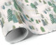 Design de Natal pintado à mão com uma floresta de pinheiros verde-inverno num fundo de neve de marfim.