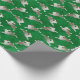Leaping Hare Christmas Wrapping Paper apresenta uma lebre saltitante (coelho) em um chapéu vermelho de Papai Noel em uma mão verde vibrante pintada em aquarela em papel texturizado.