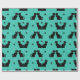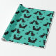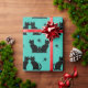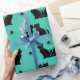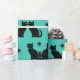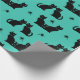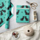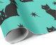 Gatos negros em retrorreflectores sentam em diferentes poses. Este design adiciona um fundo aqua com sotaque estelar.