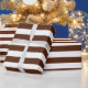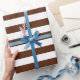 Um papel de envolvimento projetou com um teste padrão listrado marrom e branco em tamanho grande. Você pode mudar o marrom para uma cor diferente.