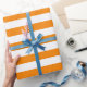 Um papel de envolvimento projetou com um teste padrão listrado alaranjado e branco em tamanho grande. Você pode mudar a laranja para uma cor diferente.