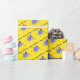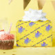 Celebrar o hipopótamo com este belo papel de embrulho de aniversário do hipopótamo tem um fundo amarelo com sotaques roxos e cor-de-rosa. Perfeito para embrulhar presentes especiais de aniversário.