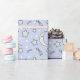 Papel de embrulho azul à moda com uma lua do sono e um teste padrão de estrelas. Ideal para envolver acima presentes para um chá de fraldas ou um bebê novo. Artigos de harmonização disponíveis em nossa loja. Também disponível em cores diferentes.