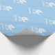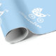 Luz - papel de envolvimento azul com carruagem de bebê bonito e nome ou monograma personalizado. Ideia bonito para presentes do chá de fraldas e de primeiro aniversario. Carrinho de criança de bebê adorável/design com erros/infantil do pram com corações pequenos. Papel de embrulho doce para que a mamã nova ou a mamã seja. Imagem neutra para o menino ou a menina. Cor customizável do fundo. o IE amarela brandamente, rosa pastel, roxo, cinzas ou luz - azul. Tipografia elegante do roteiro.