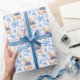 ursinho de cor d'água azul marinho com papel de embrulho de presente para bebês com padrão uniforme floral.
