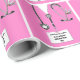 Embalagem de presente com temática médica criativa, contendo os esfregões cor-de-rosa dos hospitais do médico, estetoscópio e faca suíça. Editar texto para adicionar o nome do médico, enfermeiro ou assistente médico.