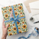 Os girassóis amarelos bonito são apresentados neste papel de embrulho floral de presente para os aniversários ou qualquer ocasião.