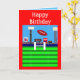 Cartão de aniversário de futebol desportivo para crianças bonitas, fácil de personalizar com o nome do seu filho ou para ser utilizado como convite de festas desportivo, concebido pelo artista desportivo americano zazzle.com/kidssportsfunstuff*. Jovens jogando futebol, obrigado pelas notas disponíveis.