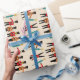 Balance a coleção do papel de envolvimento dos feriados. Os soldados de brinquedo de muitas cores da pele diferentes dançam junto na neve com árvores de Natal.