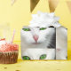 Um gato bonito com olhos verdes faz uma maneira única de apresentar esse presente especial!