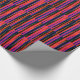 Papel de embalagem púrpura, azul e laranja, raspado em tiras