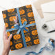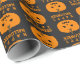 Um papel de embrulho de Halloween com abóboras e um texto de "Feliz Halloween".