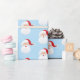 Papel de embrulho de presente de Natal mostrado numa cor azul clara de fundo com um impressão de Natal festivo. Escolha sua cor de fundo. Personalize este papel ou comprar como está.