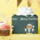 Papel embrulhado com Papais noeis sorridentes de pão de gengibre, em terno verde, e as palavras "Feliz Natal". As palavras podem ser personalizadas como quiser. Feliz Natal!