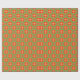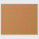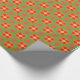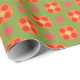 Um rolo de Giftwrap, com um padrão estilizado de Escarlet, Rosa Brilhante e Bolsas e Bolinhas Laranja sobre fundo Verde. Parte da coleção 'Poppy Fields' de Posh & Painterly.