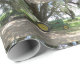 Velho trator verde arrastando melancias e descansando sob carvalhos vivos