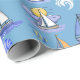 Papel de embrulho para embarcações à vela azul; perfeito para embrulhar presentes nos aniversários e presentes de chá de fraldas para crianças.