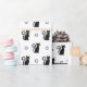 O "White Halloween Wrapping Paper" (Livro Branco sobre os Gatos Pretos Sem Costura) apresenta os elegantes gatos pretos a vaguear pelo jornal, acrescentando um ar de mistério ao seu presente de Halloween.
