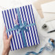 Presente Papel branco e azul de enrolamento em tiras