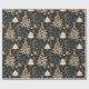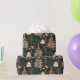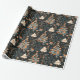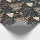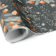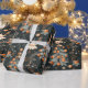 O delicioso papel de embrulho de Natal apresenta árvores brancas e ornamentos laranja vibrantes contra um fundo escuro, perfeito para adicionar charme a presentes e celebrações de férias.