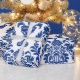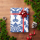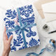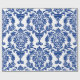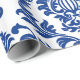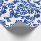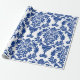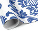 Presente Papel com padrão de damasco azul e branco