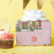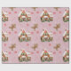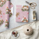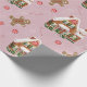 Uma doce casa de pão de gengibre, biscoitos de gengibre e doces de menta são colocados sobre um bonito fundo cor-de-rosa com linhas sutis de poinsettias para fazer este lindo e nostálgico papel de embalagem de Natal.