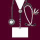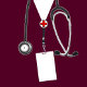 Design de doação com tema médico, com esfregões hospitalares do médico, estetoscópio e um canivete suíço. Editar texto para adicionar o nome do médico.