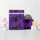 A design de Diversão do Halloween apresenta a Bruxa Voadora e a silhueta da lua crescente sobre fundo roxo.