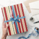 PAPEL DE ARMAZENAMENTO DE Stripes de Natal - Um padrão de listras de fundo em cores festivas de férias. As listras têm várias larguras por todo o lado. Algumas das listras são planas, algumas são biseladas. As cores principais são vermelho, verde; branco cremoso e ouro. Há vários desses padrões de Stripe de Natal que você pode misturar e combinar. Embora o Natal esteja no título, alguns dos padrões são adequados a qualquer momento do ano. Todos eles coordenam, mas não há dois padrões iguais. A coordenação de padrões de xadrez e cores sólidas também está disponível. Escolha qualquer tamanho ou acabamento dos papéis de empacotamento de presentes do Zazzle.