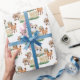 Papel De Embalagem De Animais De Exploração Floral Bons. A design apresenta vaca, burro, cavalo vestindo buquê floral na cabeça, em pé perto da cerca. Para mais personalizações, contacte-me em kbasandra@gmail.com
