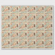 Um papel de embrulho de primeiro aniversario em castanho, castanho, laranja, preto e verde para uma festa de aniversário selvagem e maravilhosa com tipografia e pegadas. O fundo tem um padrão de girafa bronzeada para adicionar a qualquer tema safari.